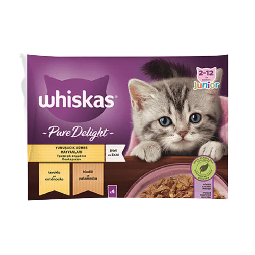 Whiskas Pouch Pure Delight Jöle İçinde Tavuklu ve Hindili Yavru Kedi Konservesi 85gr (4’lü)