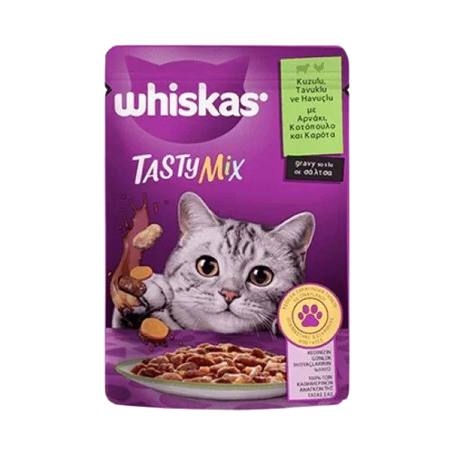 Whiskas Pouch TastyMix Sos İçinde Kuzulu Tavuklu ve Havuçlu Yetişkin Kedi Konservesi 85gr